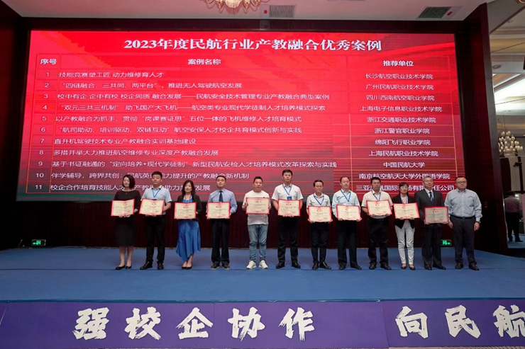 在“第三届民航职业教育培训发展论坛”召开前,中国航空运输协会征集了2023年度民航行业产教融合典型案例。dg百家乐在线试玩平台 报送的案例“伴学辅导,跨界共创:民航英语能力提升的产教融合新机制”荣获“产教融合优秀案例”称号。中国航空运输协会常务副理事长潘亿新为获奖单位颁奖,王孝存代表团队领奖。