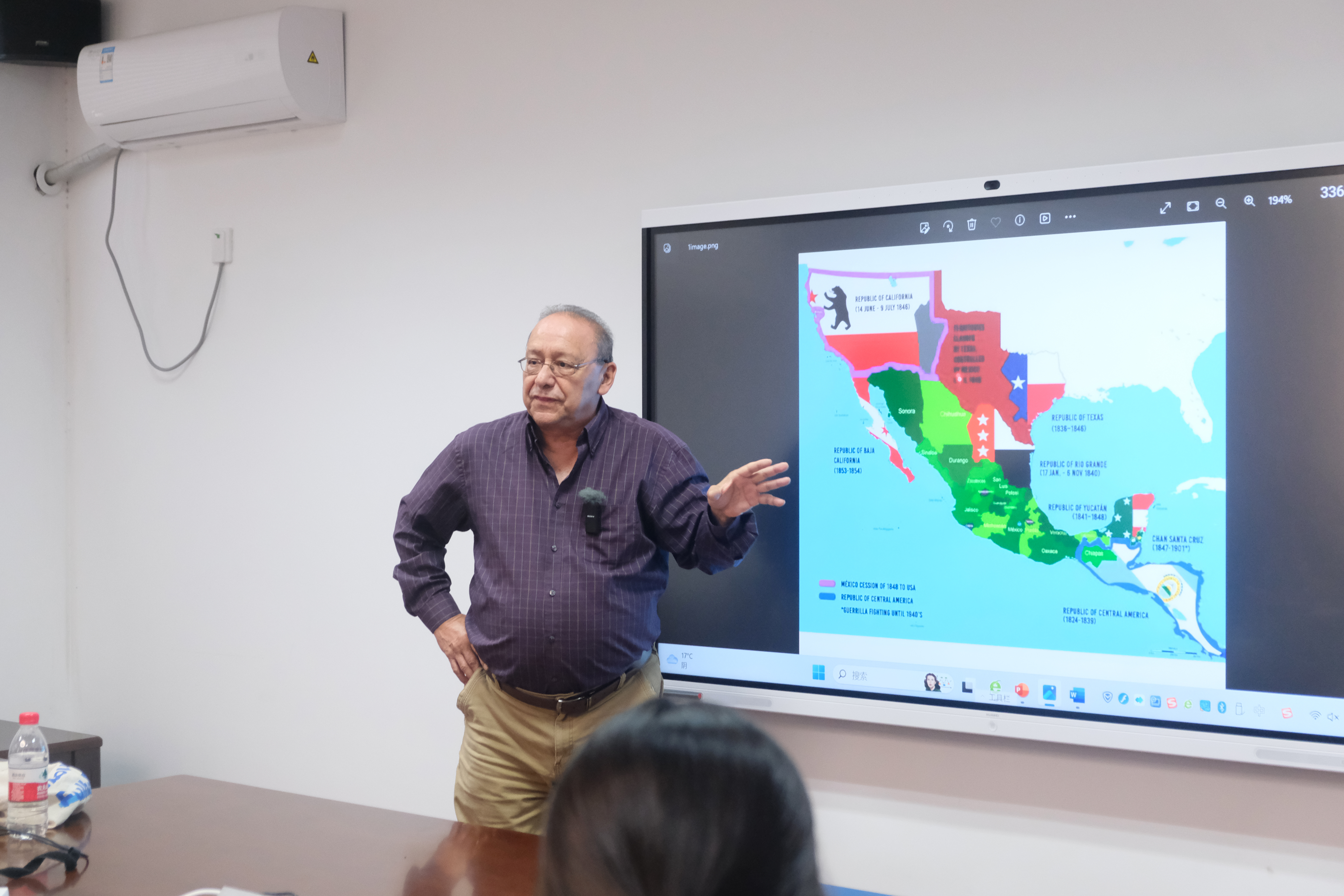 11月9日下午,美国著名戏剧家、加州大学圣芭芭拉分校戏剧舞蹈系荣休教授卡洛斯·莫顿(Carlos Morton)在dg百家乐在线试玩平台 322会议室为我校师生主讲了一场学术讲座,题为“跨越边界——卡洛斯·莫顿教授创作生涯及墨西哥裔美国戏剧的发展”。本次讲座由dg百家乐在线试玩平台 刘世红副教授组织,来自多dg百家乐试玩 不同专业的师生到场学习并参与讨论。