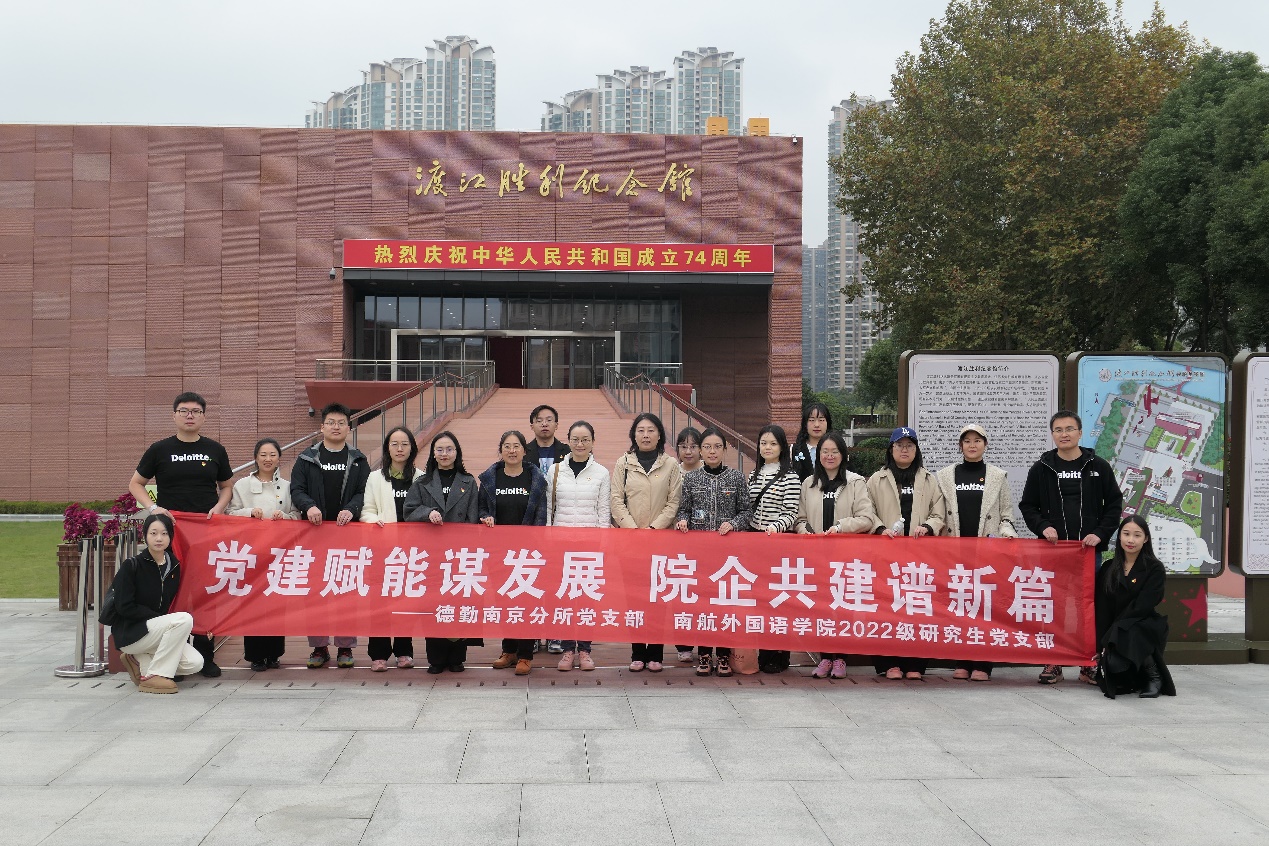 为增进校企交流,巩固访企拓岗成效,dg百家乐在线试玩平台 与德勤南京分所联合开展以“寻访红色地标,赓续红色信仰”为主题的党日活动,共同参观南京渡江胜利纪念馆、中国共产党南京历史展览馆,并交流心得体会。德勤南京分所党支部书记、审计部合伙人鞠广皓、支部副书记、审计部经理刘佳带领分所党支部成员,dg百家乐在线试玩平台 党委书记左彤云、党委副书记吴科颖带领2022级研究生党支部成员及青年教师代表共同参与了此次活动。
