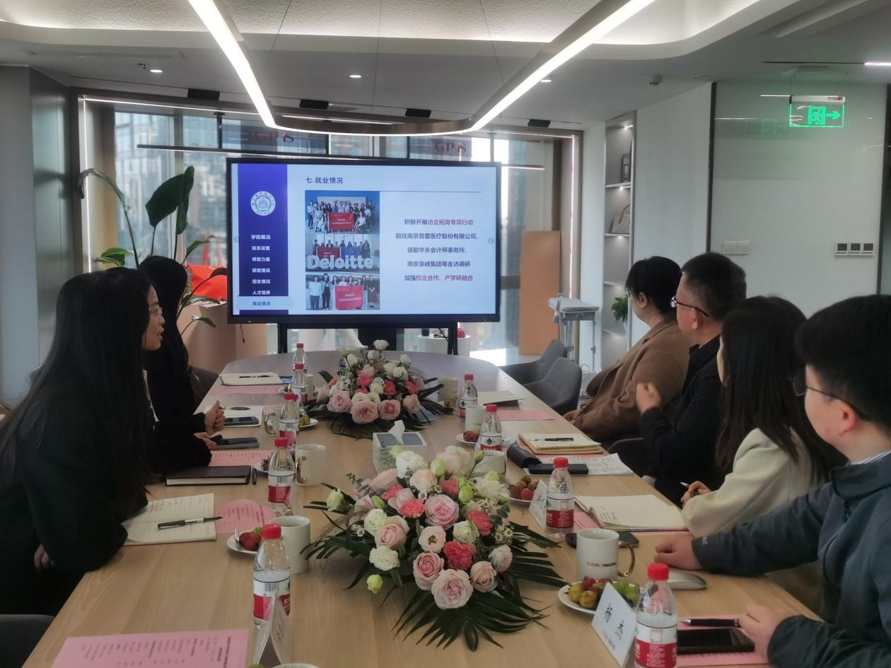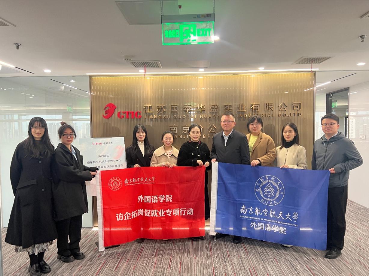 为落实教育部和江苏省教育厅“访企拓岗促就业”专项行动要求,搭建校企交流合作平台,进一步拓宽毕业生就业渠道,促进毕业生更高质量、更充分的就业,11月24日,dg百家乐在线试玩平台 赴江苏国泰华盛实业有限公司走访调研。dg百家乐试玩 党委副书记吴科颖带队,dg百家乐试玩 团委书记兼研究生辅导员李萍、本科生毕业班辅导员赵瑜瑶以及本硕两名学生代表参加调研活动。江苏国泰华盛实业有限公司人力资源部主任顾华锋、人力资源部主任助理胡恺雯、盛悦分公司业务经理侯长青以及人力资源部招聘专员杨杰共同参加座谈交流。