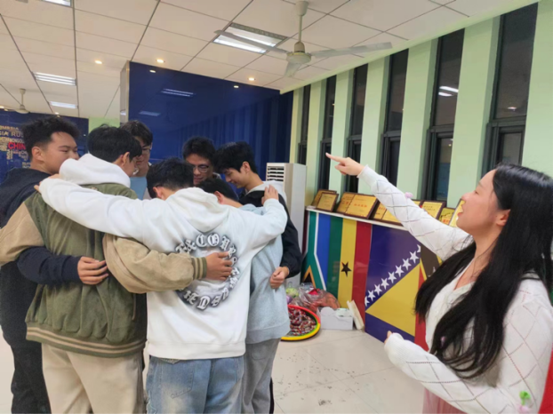 随后,通过分小组进行活动比拼,同学们充分释放压力。活动包括“扔掉烦恼”,将“烦恼因子”扔进垃圾桶,甩开不愉快;“我旁边的朋友”,通过回忆组员代号提高专注力,增进交流与了解;“你划我猜”,在实时的肢体互动中培养“亲密关系”,提升心理体验,破除压力对个人的压迫感和隔绝感。