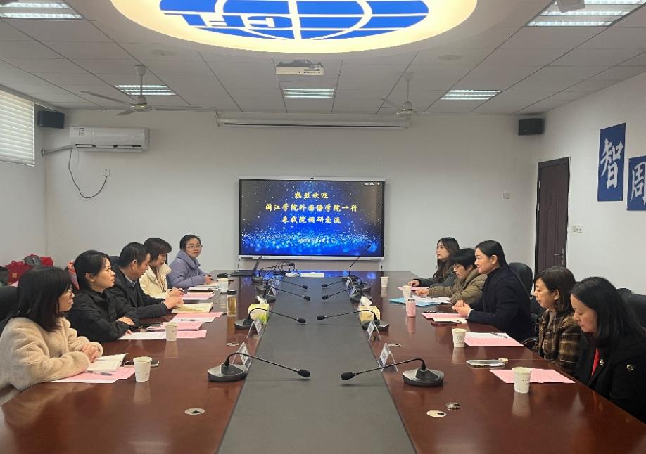 12月6日,闽江dg百家乐试玩 dg百家乐在线试玩平台 党委副书记郭崚等一行五人来dg百家乐在线试玩平台 调研交流。dg百家乐在线试玩平台 副院长徐以中、大外部主任和教学办相关人员出席座谈会。