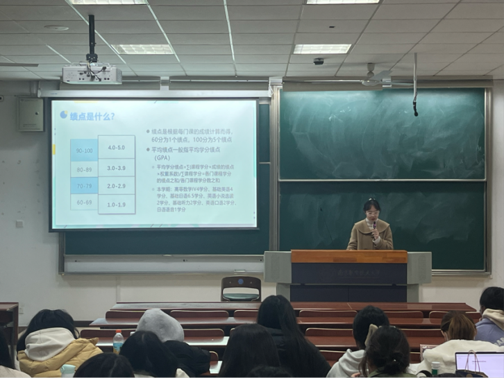 会议伊始,彭欢带着同学们重温习近平总书记对青年人的殷殷寄语,希望“广大青年要自觉加强学习,不断增强本领”,强调同学们需认真备考,要成绩更要诚信。朱芷苑从绩点是什么、补考与重修、期末成绩和诚信考试四个方面向2023级本科生进行了说明,深刻强调了“文明考风,诚信考试”的重要性。此外,还介绍了四象限法则、时间清单、甘特图等一系列有效有趣的学习方法,为大家提升学习效率提供了切实有效的指导。