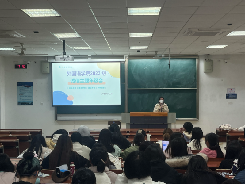 为进一步加强考风考纪教育,增强同学们的诚信意识,并帮助同学们更好迎接即将到来的期末考试,12月7日下午,dg百家乐在线试玩平台 2023级诚信主题年级会暨“榜样 对话”分享会在D3102举行。年级会由本科生辅导员彭欢、兼职辅导员朱芷苑主持,榜样代表王雅琪、朱丹、徐姝分享经验,2023级全体本科生参加。