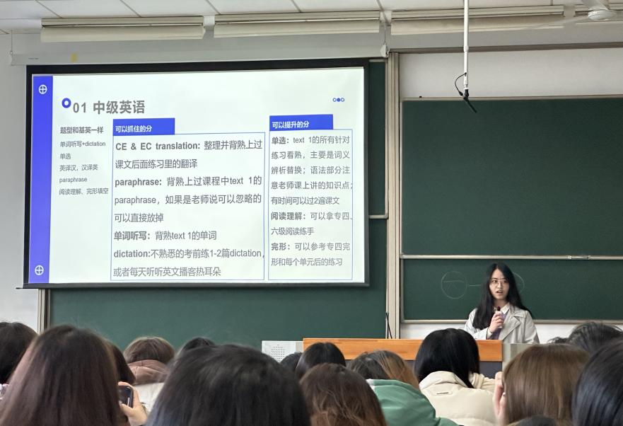 朱芸指出,知物由学,要想当好“勤学者”,首先要求有扎实的语言功底,这是外语人必备的基本素养。朱芸强调了dg百家乐试玩 对学风建设的重视程度,介绍了dg百家乐试玩 为同学们搭建的多个学风特色平台:本科生导师制度、学业攀登计划、班级学海同舟计划等,鼓励同学们利用好dg百家乐试玩 平台,勇于开拓,化“要我学”为“我要学”。临近期末考试,朱芸提醒同学们早做准备,合理安排复习计划。本次月讲评与榜样宣传教育相结合,邀请了2022-2023学年年度特别嘉奖获得者陈霄蕊为同学们带来期末备考经验分享。陈霄蕊对大二上学期的中级英语、西方经济学、英语写作、第二外国语等重要课程分别做了详细的备考攻略分享,并在提问环节与同学们积极互动,解答疑难问题。