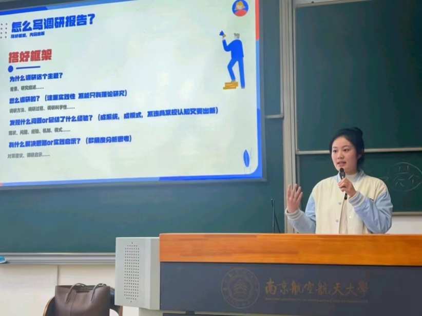 其次,是知行合一,当好“宣传员”。应该从现在起努力培养创新精神,积极投入各项创新创业项目的实践中,努力发挥专业特长,利用专业特色创新对外话语表达方式,将来为讲好中国故事、提供中国方案积极助力。本次讲评特别邀请到2022-2023学年校长特别嘉奖获得者,来自经济与管理dg百家乐试玩 的张瀚茹为同学们带来她带领团队获第十八届“挑战杯”全国特等奖的经验分享,从比赛选择、选题定题、调研报告撰写等方面分享经验与心得。此次分享激励了同学们在今后的学习生活中积极参与各项创新创业项目,培养创新精神。