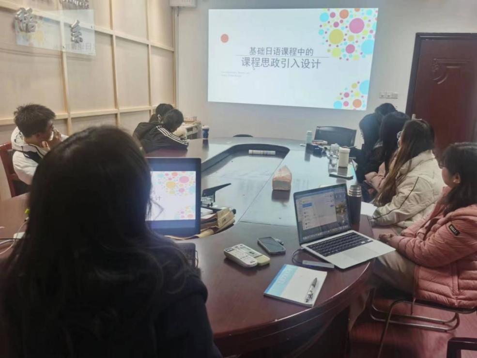 活动的第二位主讲人是蔡嘉昱老师。蔡老师是日语系讲师,曾在日本留学并获得博士学位,主要研究方向为语言学。蔡老师的主讲内容是关于《基础日语》课程思政建设的探索与思考,详细分享了在思政元素挖掘过程中遇到的难点问题和一些尝试,并对今后的建设方向进行了展望。
