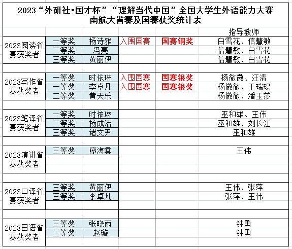 近日,2023年外研社国才杯“理解当代中国”全国大学生外语能力系列大赛落下帷幕,我校选手在dg百家乐在线试玩平台 竞赛团队教师的精心组织和指导下取得了骄人的成绩,其中全国总决赛3项获奖,江苏省复赛获奖14项。