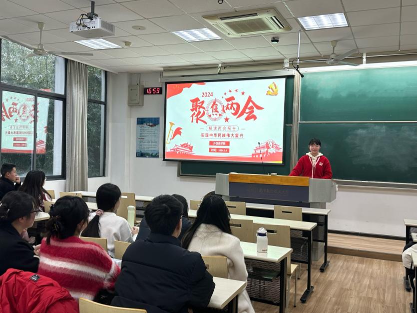会议伊始,同学们观看了会议视频,并认真学习政府工作报告。在新的历史坐标上,全国两会立足新方位、描绘新蓝图,开辟以中国式现代化全面推进强国建设、民族复兴伟业的新局面。同学们们认真聆听,深入思考,对于国家的发展目标、政策走向有了更加清晰的认识。