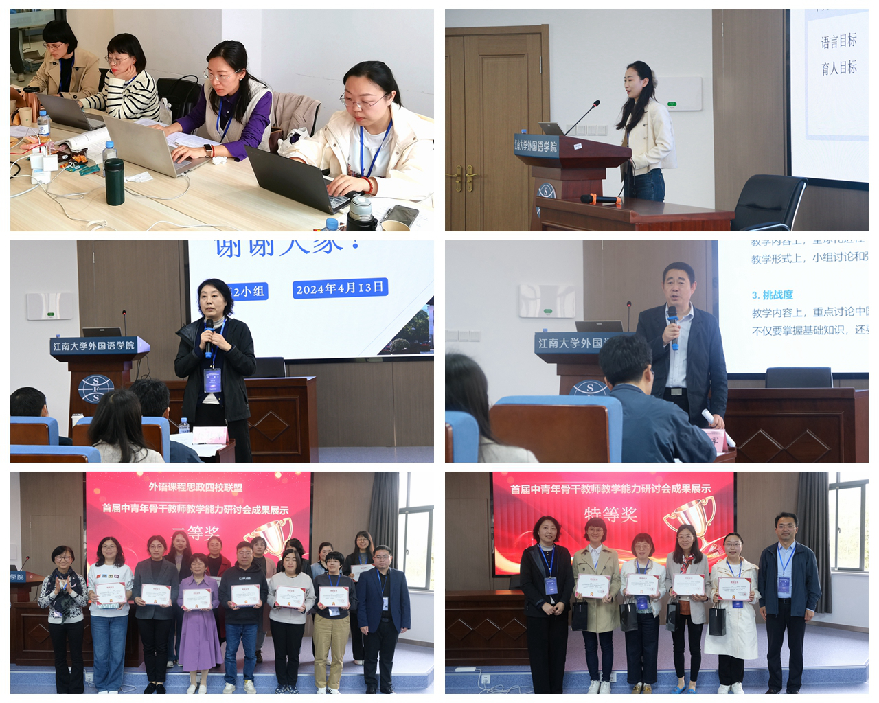 4月12-13日,外语课程思政四校联盟首届中青年骨干教师教学能力研讨会在江南大学dg百家乐在线试玩平台 召开。由南京航空航天大学、南京理工大学、江南大学、河海大学共同组建的外语课程思政四校联盟,旨在统筹四校外语课程思政育人资源,打造具有一定区域特色的“课程思政品牌”,也是四校联盟推进落实高校外语思想政治教育体系,落实外语教育立德树人根本任务的重要实践和落地举措。dg百家乐在线试玩平台 党委书记左彤云、副院长徐以中及骨干教师参会。