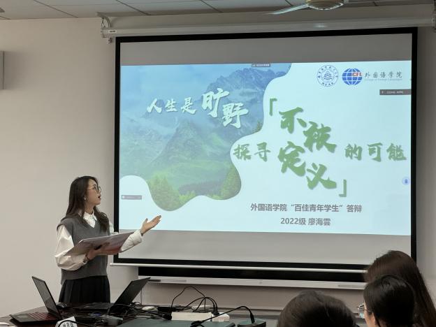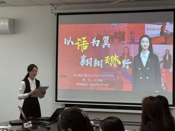 外语青年的青春故事精彩纷呈:2023级硕士研究生周若冰秉赤诚之心传承“红色基因”,担时代之责播种“蓝色梦想”,围绕志愿服务、学生工作展开了答辩,分享了组建御风园讲解团等故事;“‘语’见世界,‘姝’写青春华章”,2021级本科生徐姝围绕“中国灵魂、世界眼光”,分享了参与模拟联合国、国际组织实习等故事,将南航声音传向世界;“语以书情,言以传声”,2022级本科生王嘉玚同学以国际视野放眼大国外交,以青春之姿注入活力南航,讲述了她的志愿服务故事;“人生是旷野,探寻不被定义的可能”,2022级本科生廖海雲同学勇敢追梦,在人生的旷野上奋力前行,有毅力、有本领、有胆量、有担当是她的青春写照;“以语为翼,翱翔’琳’野”,2022级本科生石宇琳同学从学业、志愿、实践活动等方面分享了作为Mr.China团队总负责人,参加联合国教科文组织相关活动的精彩故事,展现了外语学子的宽阔视野。