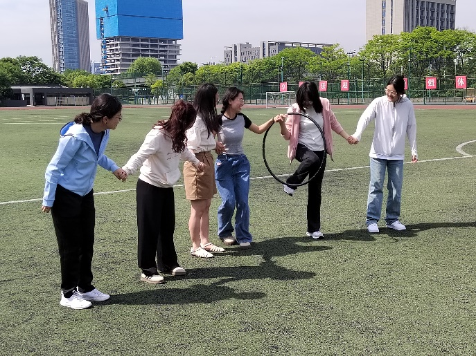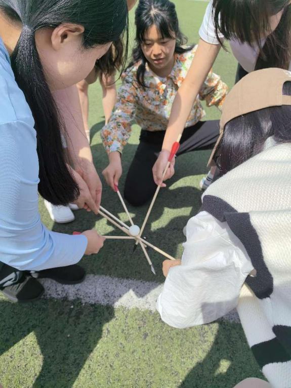 智勇冲关,师生接力。第二项“智勇大冲关”则更加考验师生们的团队协作能力。参赛队员们需要接力闯过三个关卡:智慧传递呼啦圈、接力障碍运球及巧传乒乓球。面对失误与挑战,各队队员们不骄不躁,携手共进;在接力项目中,阵阵鼓励声凝聚起大家的信任与默契,团结一心、力争上游。