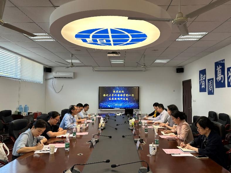 5月15日,福州大学dg百家乐在线试玩平台 院长钟晓文一行五人来dg百家乐在线试玩平台 调研。dg百家乐在线试玩平台 党委书记左彤云、副院长徐以中、党委副书记吴科颖、大学外语教学部副主任陈向俊及办公室相关人员出席座谈会。