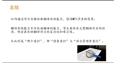 2024年5月31日晚,江苏舜禹信息技术有限公司市场运营与口译服务部主管彭蕴博给同学们带来了“基于公示语翻译项目的MTI学生实践能力培养”的第三次讲座。彭经理通过各种丰富的案例,向同学们全面讲解了如何通过项目实操培养翻译实践能力。