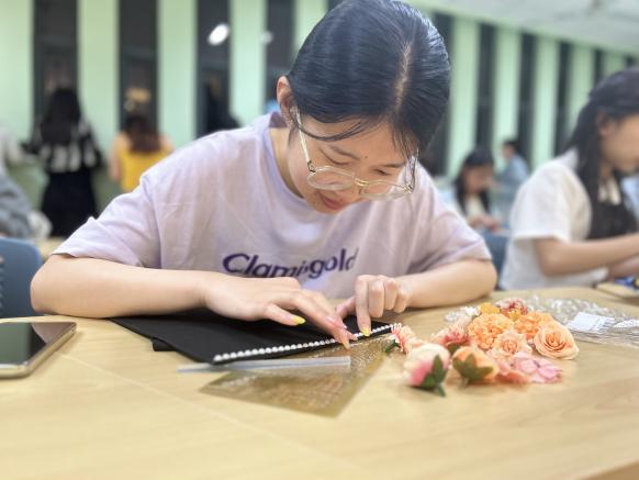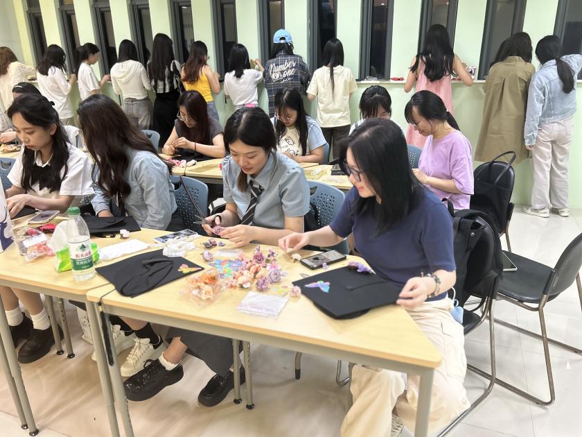 6月5日,dg百家乐在线试玩平台 组织“语”你相遇,未来可期系列毕业活动——创意簪花。本次活动传承簪花为饰的习俗,为同学们提供亲手装点学士帽的机会,让毕业季不仅有“仪式感”,更有“文化味”。