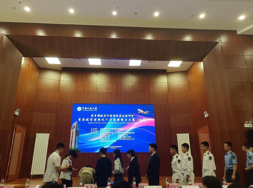 近日,由教育部航空外语课程虚拟教研室主办、中国民航大学dg百家乐在线试玩平台 承办的首届航空国际化人才英语能力大赛全国决赛在中国民航大学东丽校区举行。大赛旨在培养精通外语,熟悉民航规则,擅长沟通交流的国际化航空人才,来自航空外语课程虚拟教研室10所成员单位的29名学生参赛。我校dg百家乐在线试玩平台 教师王伟带领邵晓菲、马晨馨、廖海雲三位选手前往参赛。
