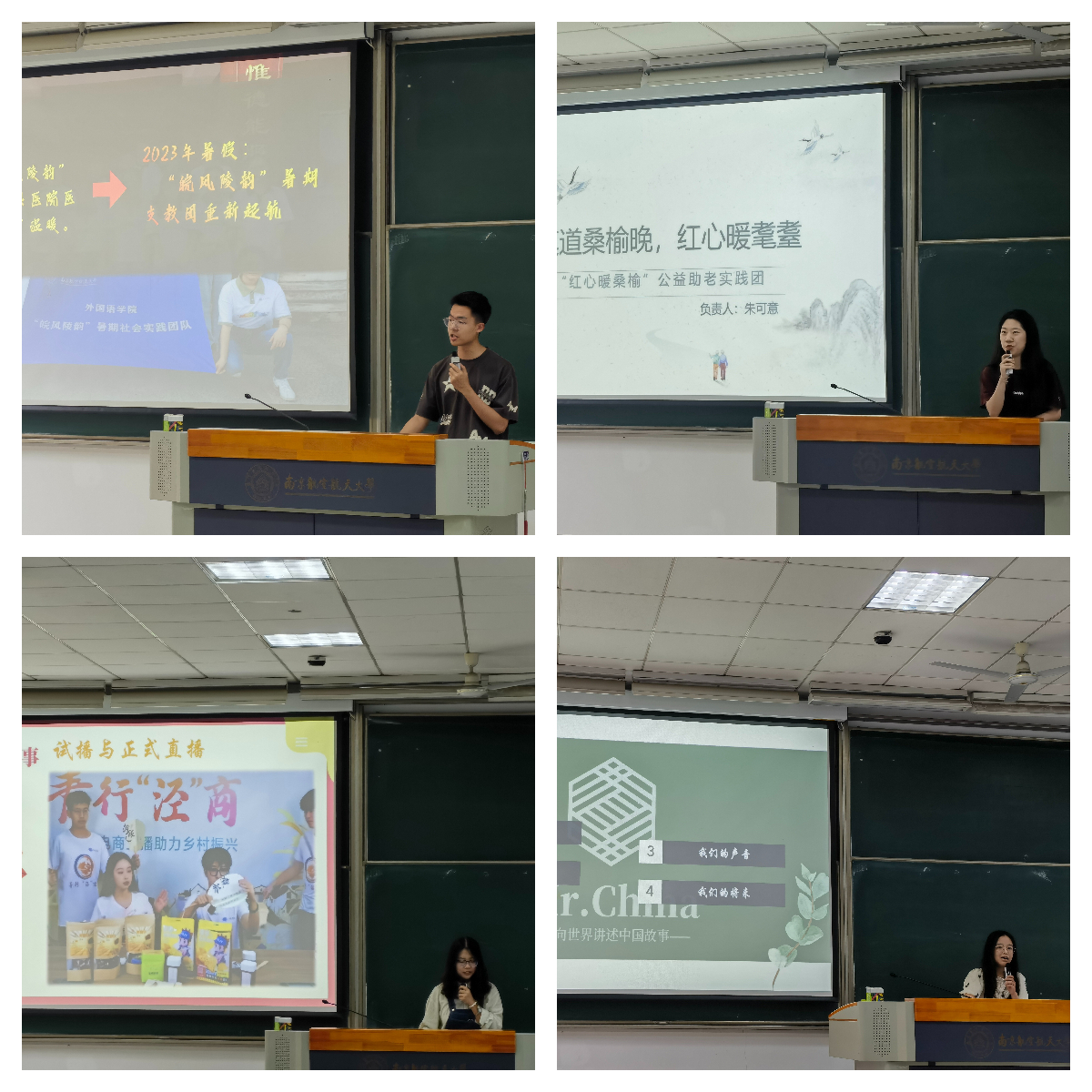 之后,dg百家乐试玩 Mr.China-向世界讲述中国故事团队、青行泾商电商直播团队、皖风陵韵爱心支教团队、红心暖桑榆公益助老团队依次对团队概况、往年实践开展情况、今年实践计划进行了介绍,并现场进行了队员招募。