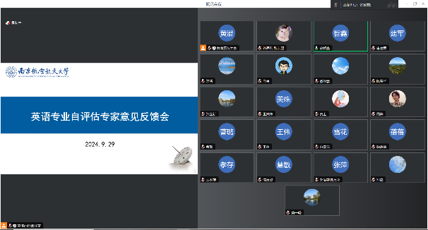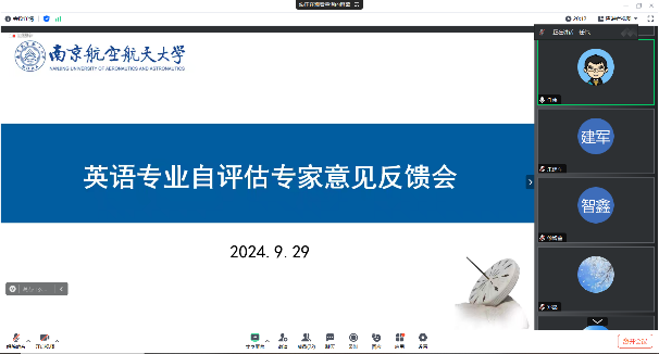 9月29日,dg百家乐在线试玩平台 英语专业自评估专家意见反馈线上会顺利召开。会议由dg百家乐在线试玩平台 副院长徐智鑫主持,评估专家教育部高等学校英语专业教学指导分委员会秘书长、广东外语外贸大学冯光武教授、北京航空航天大学任伟教授、国防科技大学陈春华教授、教师发展与教学评估中心主任朱建军、教务处副处长邓晶出席反馈会,英语专业负责人、全体教师及教学办老师参加会议。