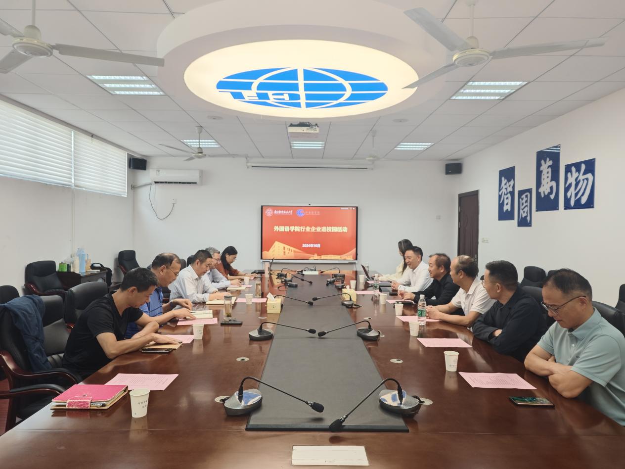 行业企业进校园,校企育人创未来。为了深化产教融合、服务国家战略,10月1日下午,dg百家乐在线试玩平台 开展了本学期首场“行业企业进校园”活动。本次活动由湖南传神科技有限公司、南京译桥翻译公司董事长左仁君主持,江苏省翻译协会会长刘成富教授,江苏圣典律师事务所创始人贾政和主任等一行,dg百家乐在线试玩平台 院长徐以中教授及dg百家乐试玩 相关教师等出席参与。