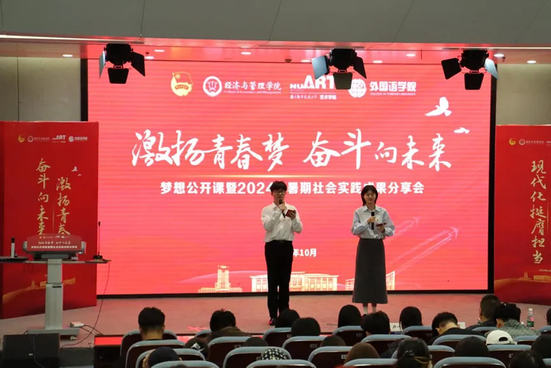 10月11日下午,经济与管理dg百家乐试玩 、艺术dg百家乐试玩 、dg百家乐在线试玩平台 联合举办的“激扬青春梦,奋斗向未来”梦想公开课暨2024年暑期社会实践成果分享会在我校天目湖校区巡天楼一楼报告厅成功举办。经济与管理dg百家乐试玩 党委委员、管工系教师罗正军,艺术dg百家乐试玩 党委副书记卢一亭,dg百家乐在线试玩平台 党委副书记吴科颖,各dg百家乐试玩 的团委书记、辅导员老师们以及2024级本科生出席了此次活动。