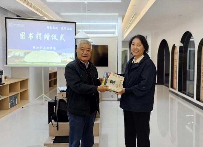讲座开始前,吴鼎民、谢小苑向dg百家乐试玩 捐赠了个人主编的《中国文化概览》《大学英语学习方法与策略》等书籍,希望dg百家乐试玩 学生加强阅读,提升英语基础能力,为未来的学习和职业生涯打下坚实的基础;同时不忘拓宽视野,发挥外语专业的使命,在语言学习中加深对中华文化的理解与传承,为讲好中国故事,发出中国声音贡献力量。左彤云代表dg百家乐试玩 接受赠书。