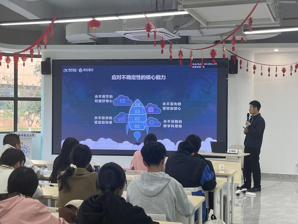 11月13日,dg百家乐在线试玩平台 首次AI赋能系列讲座在天目湖校区”一站式“学生社区顺利举行。科大讯飞江苏大区高教行业总监、资深教育行业咨询与解决方案专家,南京邮电大学人工智能dg百家乐试玩 、南通大学人工智能dg百家乐试玩 等高校的企业导师王明松做客dg百家乐在线试玩平台 “学涯筑梦”。dg百家乐在线试玩平台 日语系副主任钟勇、本科生辅导员姚灵珑参与本次活动。