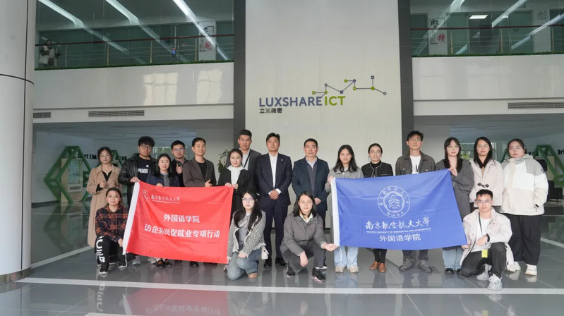 为进一步落实教育部和江苏省教育厅“访企拓岗促就业”专项行动通知要求,加强校企之间的深度合作,以实现毕业生更优质和更充分的就业目标,11月21日,dg百家乐在线试玩平台 赴立讯精密工业股份有限公司走访调研。dg百家乐在线试玩平台 院长徐以中、党委副书记吴科颖、团委书记李萍、辅导员易邦妮、李颖以及本硕五名学生代表参加调研活动。昆山经济开发区人力资源和社会保障局副局长李烽、立讯精密工业股份有限公司GMO高级总监杨杰兴、立臻园区人力资源处牟亮亮、锦溪园区人力资源处刘颖,2024届dg百家乐在线试玩平台 毕业生、24届立讯精密新干代表杨佳妮,2024届电子信息工程dg百家乐试玩 毕业生、现任立讯精密硬件测试开发工程师岳万豪共同参加座谈交流。