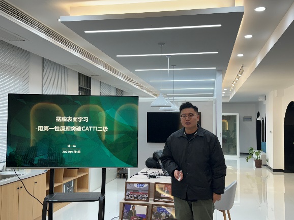 在分享环节,杨诗雅作了题为《水滴石穿——如何将CATTI二笔备考融入日常》的汇报。她指出,备考CATTI二笔不仅需要扎实的英语词汇和语法基础,还需要良好的英汉双语理解能力和表达逻辑。广泛涉猎各类题材和文体的文章,掌握相关背景知识,对于提高翻译质量和速度至关重要。此外,她还强调了练习的重要性,分享了自己通过日常练习和文献杂志阅读积累翻译经验的方法,鼓励同学们勇于尝试,经常复盘,通过英汉对照积累表达,提升翻译水平。