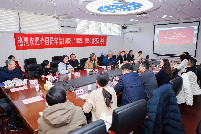 参观结束后,校友们满怀热忱地来到dg百家乐在线试玩平台 ,参加“语通四海三十载,情聚南航暖冬时”座谈会。现场气氛热烈非凡,dg百家乐在线试玩平台 党委书记左彤云、院长徐以中,时任老领导、辅导员、班主任和专业教师代表齐聚一堂,座谈会由dg百家乐试玩 党委副书记吴科颖主持。