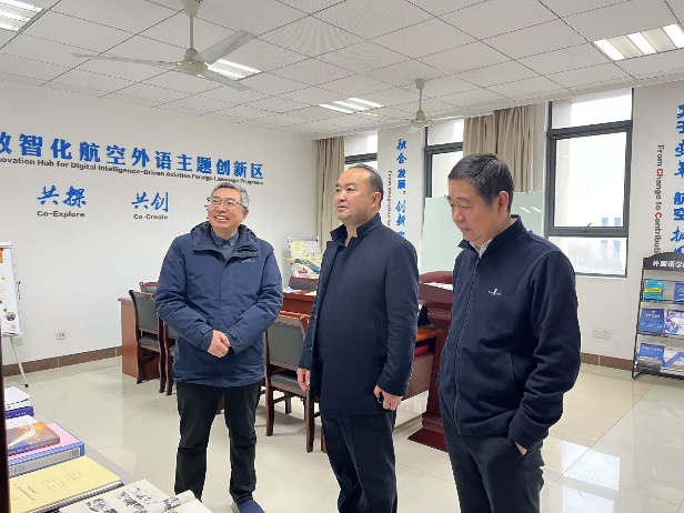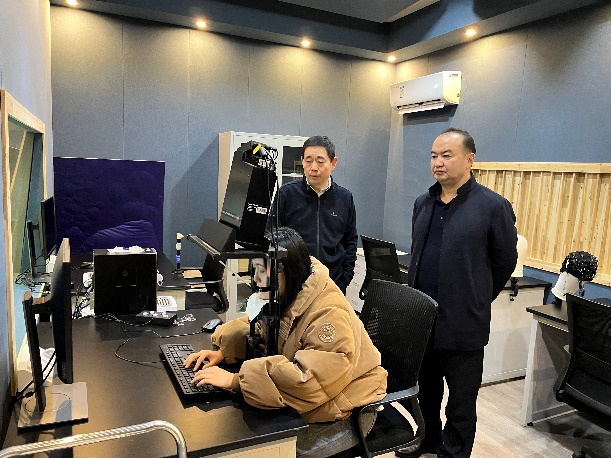 陶勇参观了dg百家乐试玩 神经认知语言学实验室、数智化航空外语主题创新区、“耘天坊”国际文化传播发展研究大学生主题创新区。