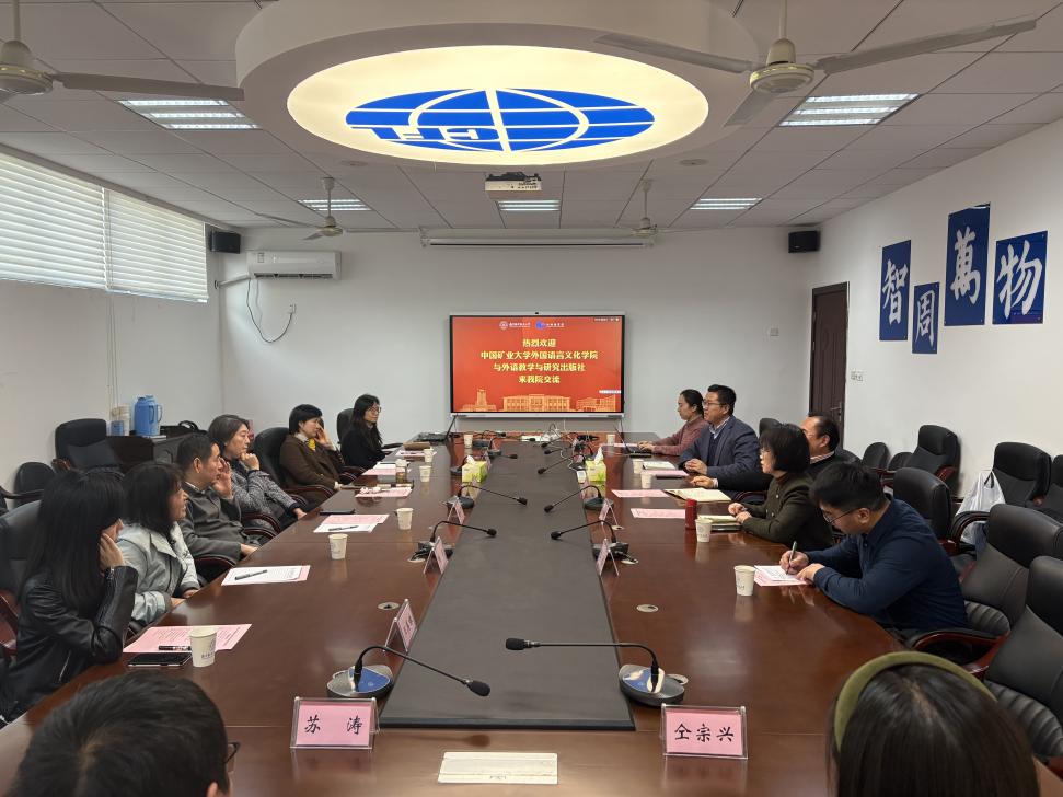 2025年3月10日下午,中国矿业大学外国语言文化dg百家乐试玩 院长祖大庆一行五人来dg百家乐在线试玩平台 调研交流。dg百家乐在线试玩平台 院长徐以中、党委书记左彤云及系部主任等出席参加。