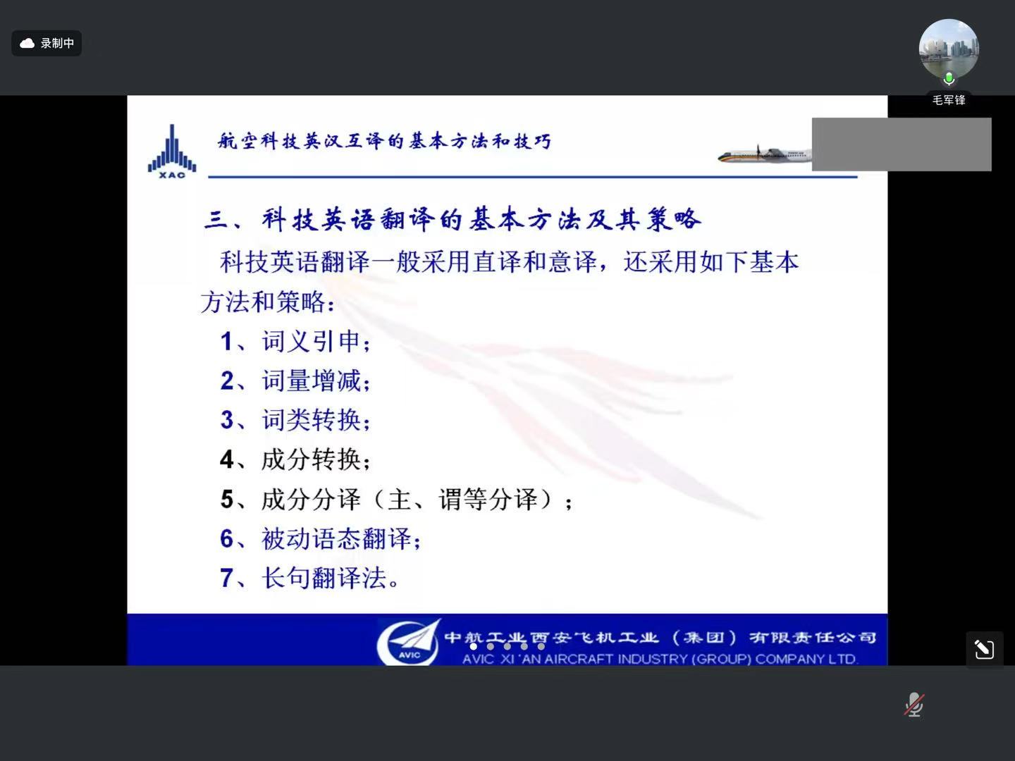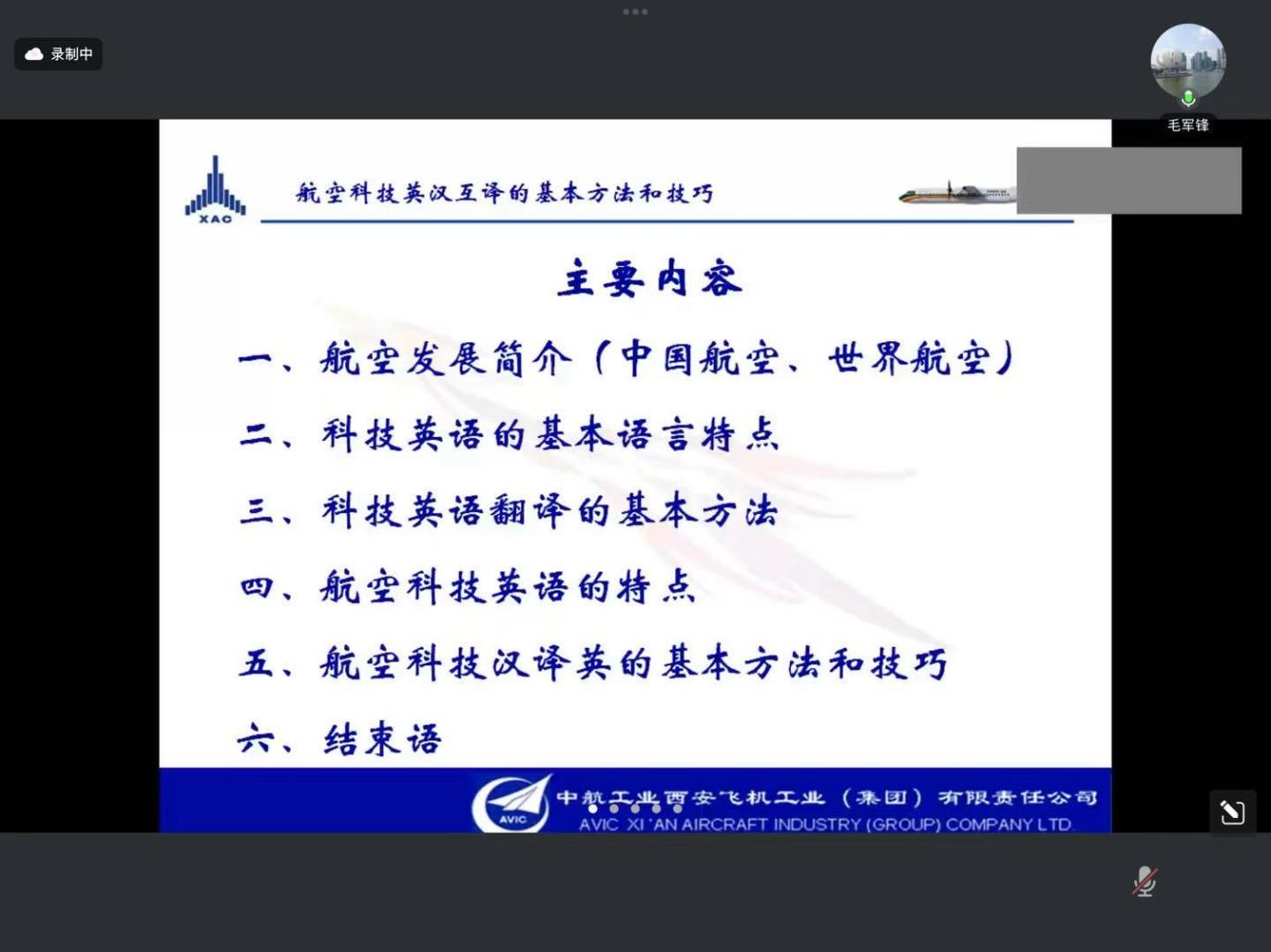 2025年3月17日晚,dg百家乐试玩-百家乐在线试玩平台. MTI教育中心举办了题为“航空科技英汉互译的基本方法和技巧”的行业实训讲座。中航西安飞机工业集团股份有限公司的毛军锋译审应邀担任主讲专家,讲座由MTI主任鲍德旺教授主持。