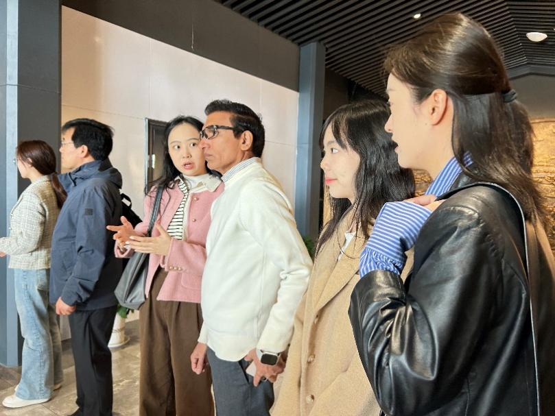 4月14日,dg百家乐在线试玩平台 朱芷苑、石宇琳、叶羽桐、何妍妍与来自联合国教科文组织农教中心、亚洲理工dg百家乐试玩 、北京师范大学、云南农业大学、广西大学、南京大学的中外嘉宾一起,参观了灌南城市客厅(县博物馆)、京东(灌南)智慧物流港、江苏汤沟两相和酒业有限公司、灌南县图书馆、孙洪香“乡土人才大师示范工作室”等多地,并担任随行翻译,细心为外宾讲解灌南文化,用专业知识搭建中外友人沟通桥梁。