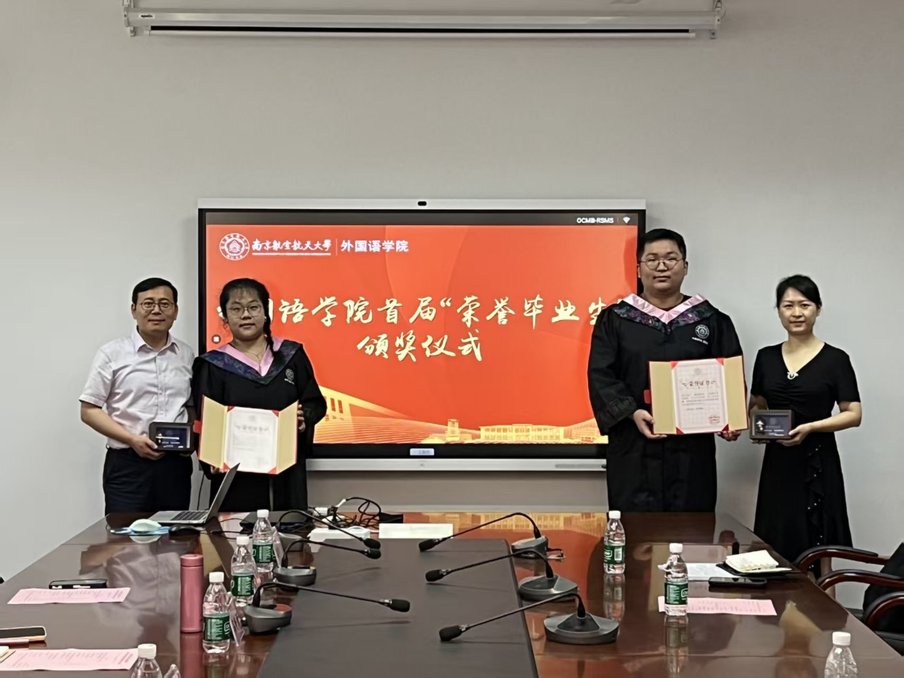 此外,今年,dg百家乐在线试玩平台 首设“荣誉毕业生”称号,姜礼福和徐智鑫为首届获此称号的同学夏晨宸和杨鑫雨颁奖,勉励他们继续在未来发展中,牢固树立责任意识,发扬勇于担当、开放包容、互助共进的外院精神。
