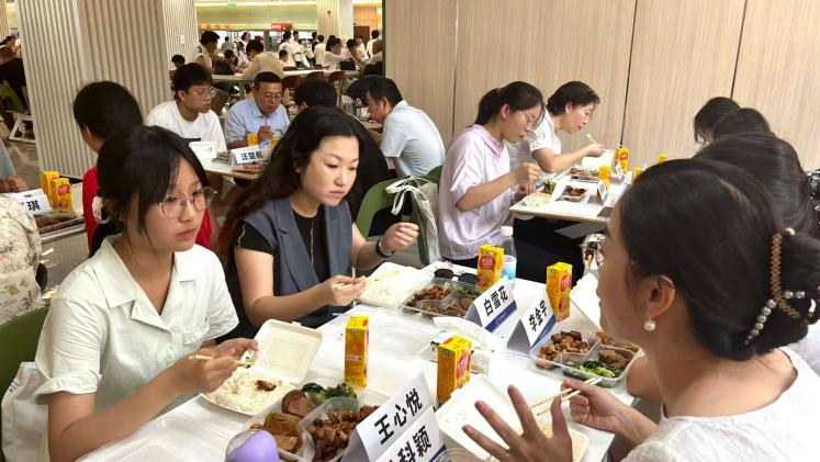 午餐时分,dg百家乐试玩 领导来到新生用餐现场,与同学们围坐一桌,在轻松的用餐氛围中关切询问饮食适应情况,倾听新生初入校园的感受。